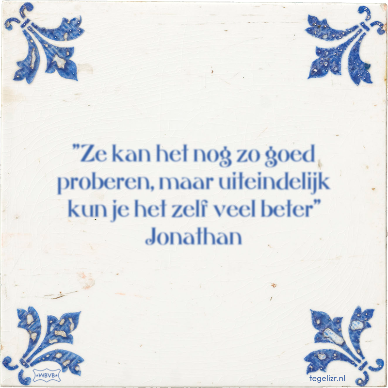 "Ze kan het nog zo goed proberen, maar uiteindelijk kun je het zelf veel beter" Jonathan➮Oh JohAls je niet pakt, dan wordt je gepakt.➭ 255 keer bekeken Hoeveel sterren is dit tegeltje waard? 54321 geef sterren Leuk? Of kun jij het beter? Maak je eigen tegeltje. Jouw tekst: Alleen letters, cijfers en leestekens. Maximale lengte 90 tekens bak mijn tegeltje Recente tegeltjes 1 tot 12 It works on my machineWeer eens tijd voor pauze!Dit is de tijd van doenPapierwerk bouwt geen bruggenEn nu is de presentatie klaar!Op papier kan alles!omarm verwarringongetwijfeldBlijf niet kwaad weg, maar kom boos terugHebben we dat ook een keer.Het was al duidelijk, hoor. Ik heb het er gewoon graag over.meer nuance, beter humeurvolgende 12 tegels›Bovenkant Bak een tegeltje! Bak een tegeltje! Jouw tekst: Alleen letters, cijfers en leestekens. Maximale lengte 90 tekens bak mijn tegeltje ×